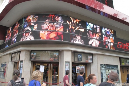 ▲映画館の外壁に設置されたモニターでは、上映会のためだけに再編集されたPVを上映!