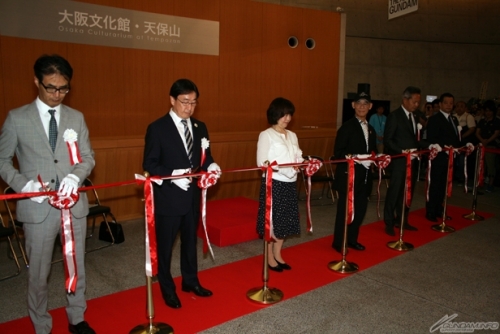 7月12日(土)、開場を今か今かと待ち望む来場者が列を成す中、「機動戦士ガンダム展」の開会式が、大阪文化館・天保山のロビーにて執り行われた。