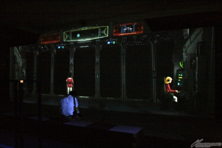 展覧会は、今回のためにサンライズが新たに制作した映像「大気圏突入」よりスタート。ブライト艦長やミライ、セイラとともにホワイトベースの艦橋の中から、『機動戦士ガンダム』第5話のような大気圏突入シーンを体感することができる。