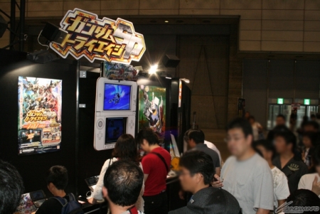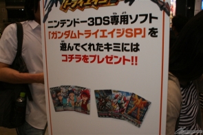 ▲バンダイナムコゲームスでは、好評発売中の3DS用ソフト「ガンダムトライエイジSP」の試遊も実施!参加者にはハロ型のトートバックとトライエイジカードがプレゼントされるとあって常に多くの人だかりが!