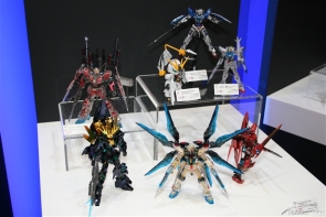 会場では、10月より放送がスタートするガンダムTVシリーズ最新2作『ガンダムビルドファイターズトライ』、『ガンダム Gのレコンギスタ』に加えて、「RG 1/144 ウイングガンダムゼロ EW」や「BB戦士 LEGEND BB 武者飛駆鳥」などの最新ガンプラがお披露目されたほか、「PG 1/60 ユニコーンガンダム」も発表。さらに、「ROBOT魂」や「ガシャポン」などの人気シリーズからも初公開アイテムが目白押しとなっている。