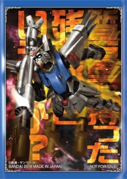 ▲優勝賞品「デストロイガンダム(MS形態)」(左)、「ガンダムF91スリーブ」(右)。
