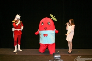 ▲特別ゲストに赤いふなっしーが登場。ちなみに型式番号は「FBC(船橋市)-274(ふなっしー)A(赤)」とのこと。