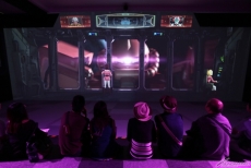来場者はまず特設シアターで『機動戦士ガンダム』の世界観に没入することができます。ホワイトベースのメインデッキ内で、ブライトら同艦クルーと大気圏突入をめぐる戦いを体験する新作映像を鑑賞します。