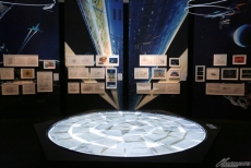 展覧会最大の見どころは、一挙1,000点を公開する制作資料です(一部複製)。物語の生みの親である富野喜幸総監督(現・富野由悠季氏)の企画段階のメモや、美術監督の中村光毅氏が富野総監督のイメージを視覚化した美術設定、美術ボード。キャラクター・デザインを手掛けたアニメーション・ディレクターの安彦良和氏が、アムロやシャアら等身大のキャラクターを描いたレイアウト原画の数々。ガンダムやザクなど、スタイリッシュなモビルスーツをデザインしたメカニックデザイナー、大河原邦男氏の精密な設定画。クリエーターの息づかい漂う作品を、光や音、映像を交えた演出で展示し、ガンダムの豊穣な世界にどっぷりと没入することができます。