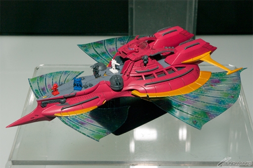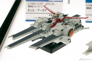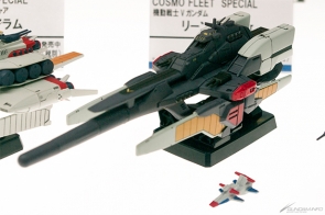 On display were all five of the released Gundam Cosmo Fleet Special ships, alongside the Megafauna, due in July, with its first shipment-bonus clear fins equipped.