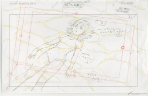 ▲セイラがプールに入っているシーンのレイアウト(左)、左のレイアウトの完成形(右)。