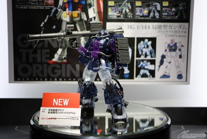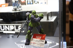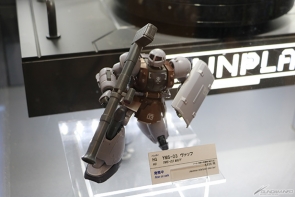 ▲"HG High Mobility Zaku II Movie Limited: Limited Clear Ver." ที่กำลังจำหน่ายในโรงภาพยนตร์ รวมทั้ง "HG Waff" (วางตลาดแล้ว) ที่ปรากฏตัวในตอนที่ 3 และ "HG Zaku I (เครื่องของเดนิม / สเลนเดอร์)" (วางตลาด 21 พ.ค.) ก็นำมาจัดแสดงด้วย