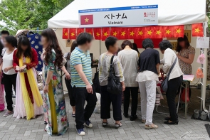 ▲การต้อนรับด้วยการพิธีชงชา「การชงชานอกบ้าน(โนดาเตะ)」และอื่นๆ、นักเรียนจากJASSOโตเกียวก็มาจัดแสดงเช่นกัน