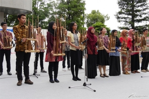 ▲การแสดงดนตรีพื้นบ้านของเหล่านักเรียนแลกเปลี่ยนและการโชว์ชุดพื้นเมือง,แนะนำประเพณีหลากหลาย บนเวที!