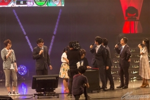 ▲เปิดตัวเพลงมายาของมิซุกิอิจิโร่ซัง! (บน) , คำทักทายจากตัวแทนของประธานบริษัทBandai Namco Entertainment・คุณโอชิตะ ซาโตชิ (ซ้าย), คำขอบคุณเนื่องในโอกาสครบรอบ25ปีของคุณคามิยะ อากิระ (ขวา)!