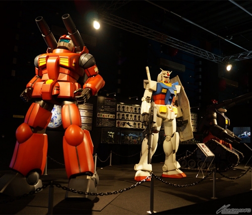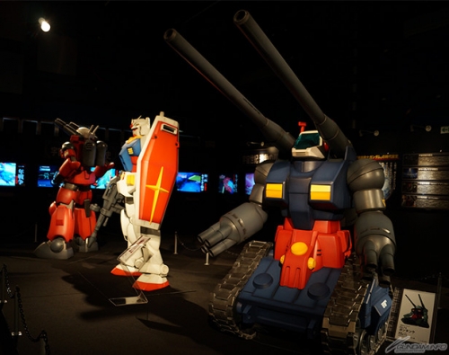 ○โมบิลสูทยอดนิยม “Gundam”, “Guncannon” และ “Guntank” จัดแสดงในขนาด 1/10