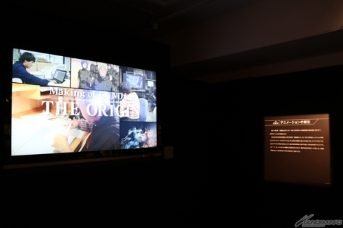 สตอรี่บอร์ดของอนิเมชั่นตั้งแต่ตอนที่ 1 ถึง ตอนที่ 3 , ภาพคอนเซ็ปต์และKey Frameของอนิเมชั่นทั้งหมดกว่า 200 ชิ้น ได้นำมาเปิดให้ชมครั้งแรกในส่วนจัดแสดงนี้ พร้อมกับเอกสารบางส่วนจากตัวอย่างอนิเมชั่นของตอนที่ 4 “THE ORIGIN IV Eve of Fate”