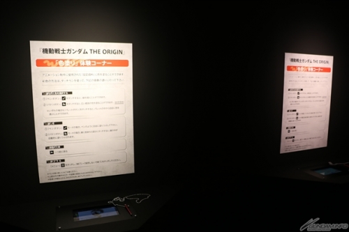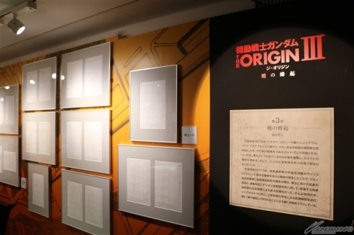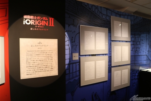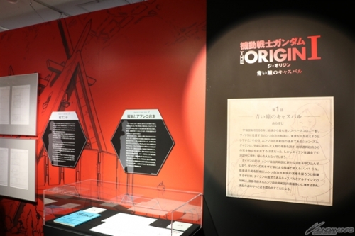 ภายในงานได้จัดแสดงผลงานต้นฉบับของ THE ORIGIN ฉบับหนังสือการ์ตูน และผลงานที่ใช้ประกอบการสร้างอนิเมชั่น อาทิ สตอรี่บอร์ด , Key Frame , บทพูด และอื่นๆอีกมากมายกว่า 300 รายการ ทีจะแสดงให้เห็นถึงความก้าวหน้าของกระบรวนการสร้างอนิเมชั่นของซีรี่ย์กันดั้มที่พัฒนามาตลอด 37 ปี โดยงานจะกำหนดจัดแสดงถึงวันจันทร์ที่ 22 ส.ค. นี้