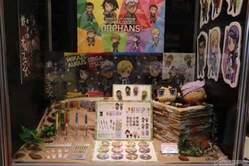 ▲最新グッズの展示に加え、10月発売予定の『鉄血のオルフェンズ』ステーショナリーシリーズを先行販売!