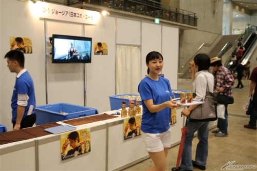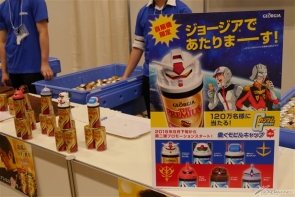 ▲ジョージアブースでは、「機動戦士ガンダム 働くモビルキャップ」第二弾の告知と賞品の展示に加え、ジョージアの試飲コーナーも!