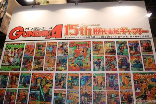 ▲創刊15周年を迎えた「ガンダムエース」は、歴代表紙に加え、直筆サイン色紙も特別展示!
