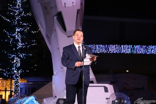 ปิดท้ายด้วยการพูดของนาย Tomino Yoshiyuki ผู้อำนวยการสร้าง “Mobile Suit Gundam” ผอ. Tomino พูดถึงหุ่นกันดั้มขนาดเท่าตัวจริงไว้ว่า “การที่ตัวละครของการ์ตูนไซไฟเรื่องหนึ่งสามารถมาถึงจุดๆ นี้ได้เป็นเพราะพลังจากทุกคนจริงๆ” แล้วยังกล่าวขอบคุณถึงแฟนๆ ที่รักและให้การสนับสนุนมากมาย พูดถึงโปรเจคใหม่ว่า “คนหนุ่มสาวทั้งหลายเป็นแรงบันดาลใจในการสร้างสิ่งที่ยอดเยี่ยมนี้ขึ้นมา” และพูดถึงความคาดหวังในอนาคตว่า “ขอบคุณสำหรับแรงสนับสนุนของทุกๆ คนจากนี้ต่อไปด้วย”
