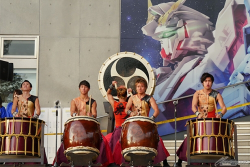 ▲เนื่องจากเป็นครั้งแรกที่จัดขึ้นในญี่ปุ่น การแสดงสดของ [Tobe (Jump)! Gundam] แสดงการตีกลองอันเป็นสัญลักษณ์ของประเทศก็ได้เริ่มต้นขึ้น