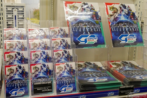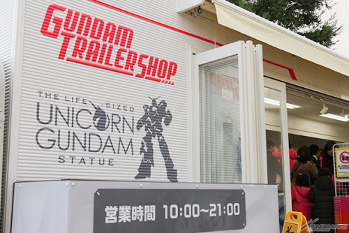 ▲ร้าน Gundam Trailer Shop ที่บริเวณเท้าของประติมากรรม Unicorn Gundam ขนาดเท่าจริง มีจำหน่ายโปสการ์ดและแฟ้มใส