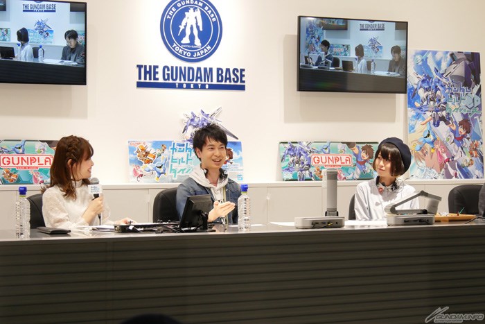 ต่อมา พวกเขาถูกถามเกี่ยวกับเกม “Gunpla Battle Nexus Online” ซึ่งเป็นเกมที่ปรากฎอยู่ในซีรีส์และมีบทบาทสำคัญ ทางKobayashi ให้ความเห็นว่า “(เมื่ออยู่ในเกม) คุณจะได้พบกับผู้คนมากมายที่เด็กม.ต้นโดยปกติแล้วจะไม่ค่อยได้เจอหรือมีปฏิสัมพันธ์ด้วยสักเท่าไหร่ ซึ่งเป็นเรื่องน่าสนใจมากครับ” ส่วนFujiwara กล่าวว่า “ฉันหักห้ามความรู้สึกตื่นเต้นไปกับโลกใบนั้นไม่ได้เลยล่ะค่ะ!” โปรดิวเซอร์ Ogawa ก็ได้เปิดเผยเรื่องราวที่อยู่เบื้องหลังเหล่า Diver ว่า “พวกเขาเหล่านี้ถูกสร้างขึ้นด้วยความใส่ใจและเป็นความภาคภูมิใจของผู้กำกับ”