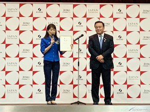 โอกาสต่อมา คุณ Karid Omran Skyt Salhan Al Ameri, เอกอัคราชทูตสาธารณรัฐอาหรับเอมิเรตประจำกรุงโตเกียวได้ขึ้นกล่าว "ขอขอบคุณสำหรับมิตรภาพและความร่วมมือร่วมใจกันระหว่าง UAE และญี่ปุ่นที่มีมานานกว่า 50 ปี ผมรู้สึกเป็นเกียรติที่ได้พบกับทุกท่านที่ได้รับเลือกให้เป็นทูตเพื่อไปร่วมงานในครั้งนี้ และนั่นเป็นสิ่งสำคัญอย่างยิ่งที่ท่านผู้ได้รับเลือกจากสาขาวิชาชีพต่างๆ มาร่วมผลักดันให้ความสัมพันธ์ระหว่างสองประเทศนั้นแนบแน่นขึ้นกว่าเดิม ผมมีความมั่นใจว่าความรู้ความสามารถของทุกท่านจะเป็นพลังอันยิ่งใหญ่ส่งเสริมภาพลักษณ์ของประเทศญี่ปุ่นในหลายๆ ทาง และเป็นแรงบันดาลใจให้ Dubai Expo มิตรภาพที่ยิ่งใหญ่ระหว่างสองประเทศจะทำให้โลกใบนี้เจริญก้าวหน้า และมุ่งไปข้างหน้าด้วยกัน และสุดท้ายนี้ ความน่าตื่นเต้นของงาน Dubai Expo จะนำไปสู่ความสำเร็จของงาน "Kansai Expo" ในปี 2025"
