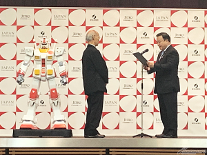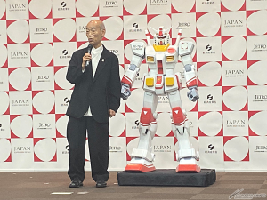 พร้อมกันนี้ ในส่วนของกันดั้ม ผู้กำกับ Yoshiyuki Tomino ได้ขึ้นบนเวทีในฐานะ "อุปทูตอย่างเป็นทางการ" ที่ได้รับการรับรองจากระทรวงเศรษฐกิจ การค้าและอุตสาหกรรม