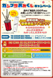 ณ ศูนย์จำหน่ายกันพลาครบวงจร "THE GUNDAM BASE" มีกิจกรรม "New Year Special Planning 2020" เริ่มตั้งแต่พุธที่ 1 มกราคม 2020
