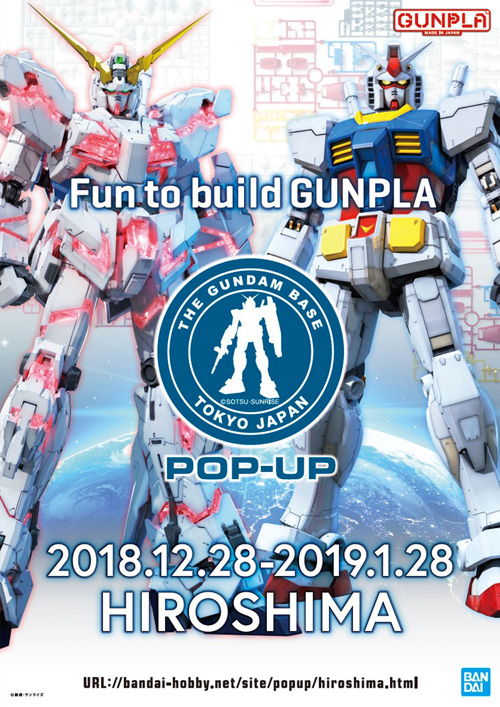 จัดที่ Hiroshima Parco ตั้งแต่ 28 ธันวา 2018 จนถึงปลายเดือนมกรา กับงาน "THE GUNDAM BASE TOKYO POP-UP in HIROSHIMA"