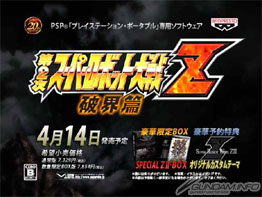 バンダイナムコゲームスより4月14日(木)に発売が予定されているPSP®用シミュレーションRPG「第2次スーパーロボット大戦Z 破界篇」の第2弾プロモーション映像が、店頭・公式サイトに先駆けて東京・秋葉原UDXビジョンと、大阪トンボリステーションの屋外ビジョンで、2月12日(土)に先行上映されることが発表された。