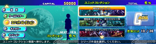 機体の収集率や入手方法のヒントが確認できる便利な「ユニットコレクション」を搭載!