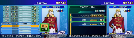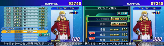 戦闘でレベルを上げることによりパイロットキャラクターは新たな「アビリティ」を習得していく。習得した新しいアビリティは戦闘で得た「ACEポイント」を使って購入・強化し、最大5つまで任意で設定することができる。