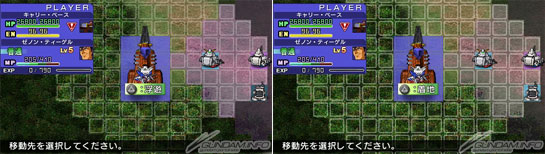 これまで戦艦から出撃する際は、ユニットごとに初期設定された移動タイプでしか出撃できず、移動タイプの変更は次のターンになってからしかできなかったが、今作より出撃時に「浮遊」、「着地」のどちらかを選択できるようになった。