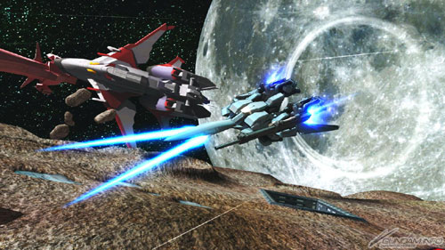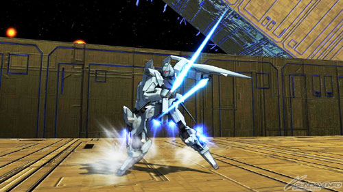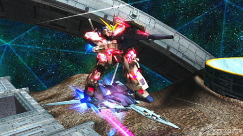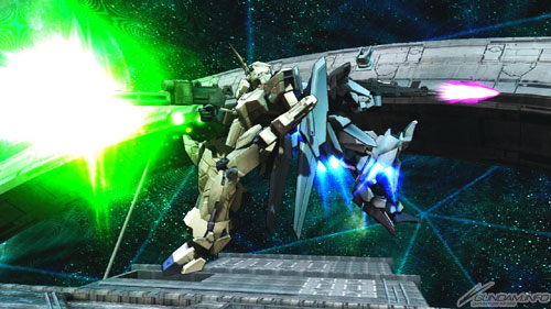 ▲ Its finishing attack is to transform into flight mode and fire from upon the Unicorn Gundam (Destroy Mode).