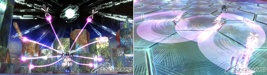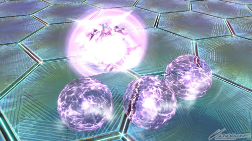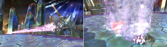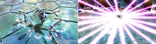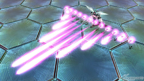 ▲ Mass fire of 12 funnels directly ahead. When multi-lockon is used, the funnels will be divided into two groups of six and attack at the same time.