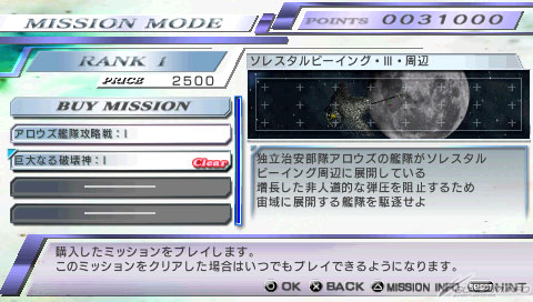 ▲In Mission Mode, challenge a series of game-original missions sorted by rank! Use points earned in-game to improve your chances of clearing random missions.