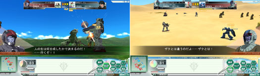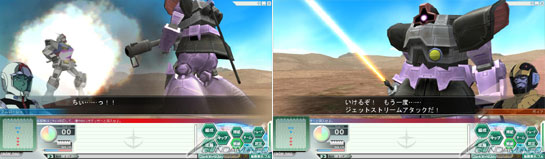 ▲ If Zeon is victorious in both 'Southeast Asia' and 'Ramba Ral', Route B ('If' Route 1), in which Aina's Apsalus II and Norris assault White Base.