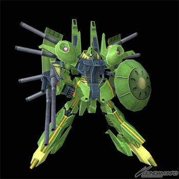 A mobile suit designed by Paptimus Scirocco. As an attack suit designed for high firepower, it is well-outfitted with weapons including a long-barreled beam gun and large anti-ship missiles.