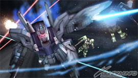 Details for the simple-yet-flashy Combo system and content-packed Mission mode in Gundam Memories ~Tatakai no Kioku~, due out June 23rd for the PSP® from Namco Bandai, have been revealed! We introduce them alongside screenshots and a roster of new mobile suits.