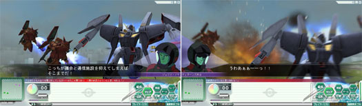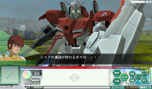▲ If the AEUG is victorious, it switches to the If route where Amuro's Zeta Plus duels the Byarlant. Amuro tears across the battlefield in a Zeta Plus painted in his personal colors.