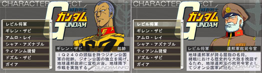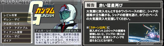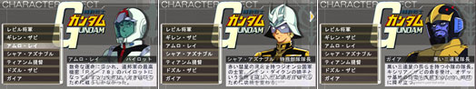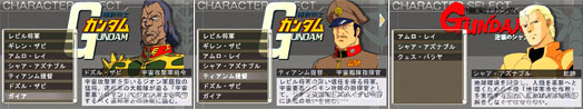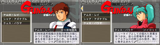 ■ Pilot scenarios: Amuro, Char, Gaia, Amuro (Char’s Counterattack), Quess