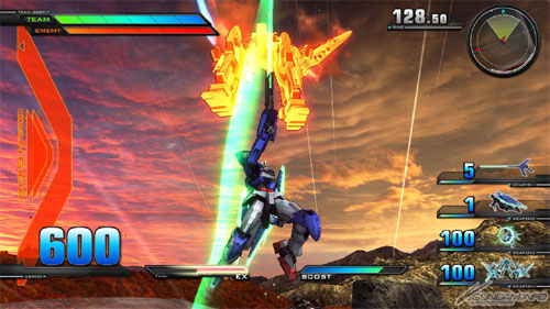 ▲ Its sub ranged attack strikes the enemy with GN Sword Bots. By holding down on the joystick while firing the sub ranged attack the GN Sword V and GN Sword Bits combine to form the GN Buster Sword.