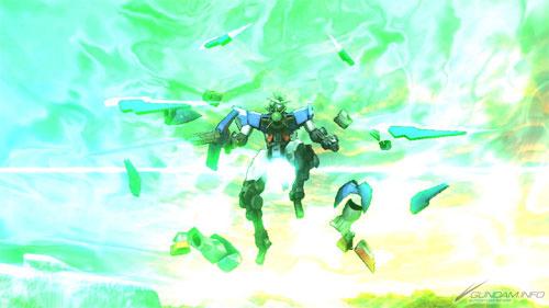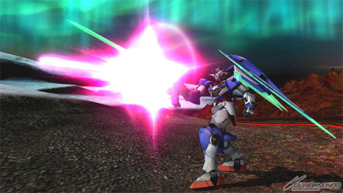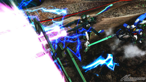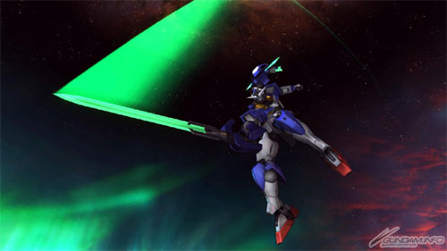 Mobile Suit Gundam Extreme Vs., currently installed in arcades nationwide, will add the 00 QAN[T], the lead suit of Mobile Suit Gundam 00: A wakening of the Trailblazer, as well as the Crossbone Gundam X2 Kai, loser of the previous Nationwide Release Battle event, on July 20th.