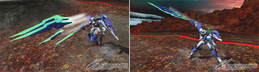 ▲ The Quantum Burst main ranged and melee attacks both change to attacks with the GN Sword Bits.