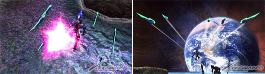 ▲ Left: its main ranged attack: Zanbuster. Right: The Beam Zamba slices through the enemy.