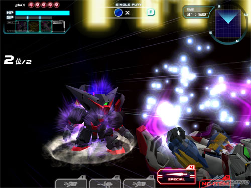 ▲ Burning Gundam glows gold in Hyper Mode. Here’s where the devastating attack begins!