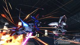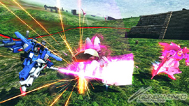 The basic systems carry over from the Gundam Vs. series. Mobile suits face off 2v2, with the team which wipes out the enemy's 'War Potential gauge' first the winner.