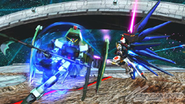 The Extreme Gundam, final boss of the arcade version, returns here. It fights in Carnage Phase, Ignis Phase, and Tachyon Phase forms.