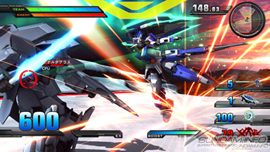 The basic systems carry over from previous Gundam Vs. games, but the game features new move-cancelling Extreme Actions and suit-enhancing Extreme Bursts.