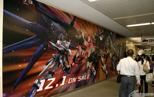 The nearest rail station to the event, JR Kaihimmakuhari, is also redone in Mobile Suit Gundam Extreme Vs. style!! From walls to carpets, ticket machines to escalator railings, the entire station is like stepping into Exteme Vs.!